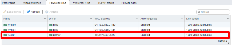Também podemos verificar se a interface física ficou disponível para uso no ESXi.