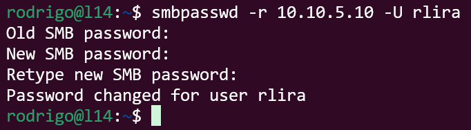 # smbpasswd -r IP_ACTIVE_DIRECTORY -U USUÁRIOVeja o exemplo abaixo.