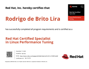 É com muita alegria que venho compartilhar uma grande conquista: finalmente fui aprovado no exame EX442 – Red Hat Certified Specialist in Linux Performance Tuning!
