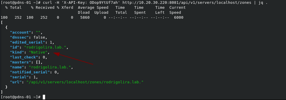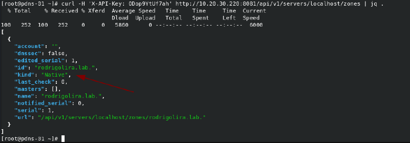 # INSERT INTO domains (name, master, type) VALUES ('rodrigolira.lab', '10.20.30.220', 'SLAVE');Observer que estamos criando o domínio com o mesmo nome do domínio no master rodrigolira.lab, estamos passando o endereço IP do nosso servidor Master (10.20.30.220) e o tipo como SLAVE.