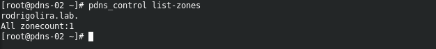 # pdns_control list-zonesO retorno do comando deve ser os seus domínios cadastrados, como a imagem abaixo.