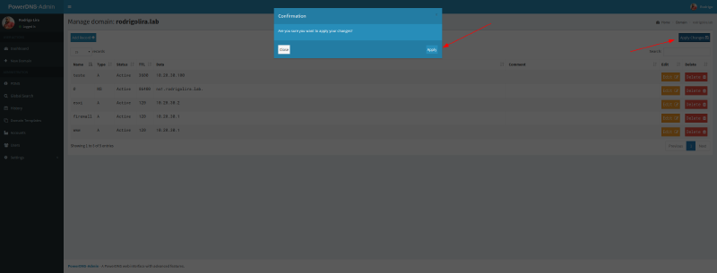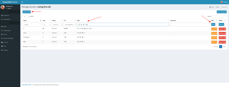 11 - Vamos criar um novo registro no servidor Master através do PowerDNS-Admin e vamos acompanhar os logs no Master e Slave.
