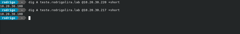 Para finalizar use o DIG de seu desktop e verifique se os servidores estão respondendo corretamente.