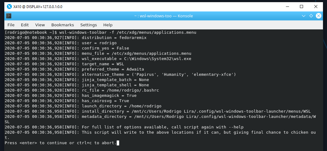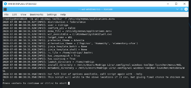 # wsl-windows-toolbar -f /etc/xdg/menus/applications.menuApos executar o comando pressione ENTER para continuar.