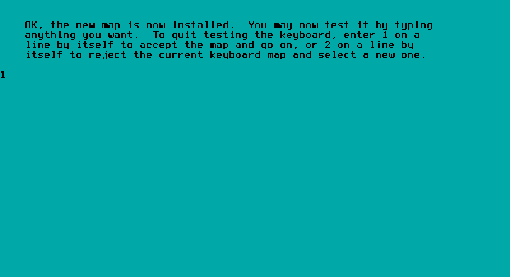 04 - Nesse momento é possível testar seu teclado, verificar se está no padrão correto, para isso basta sair teclando teclas aleatórios e verificar se as teclas aparecem corretamente. Depois disso basta digitar 1 e teclar ENTER, se tiver certeza que é o teclado desejado, caso queira corrigir, basta digitar 2 e teclar ENTER que você voltará para a tela anterior.