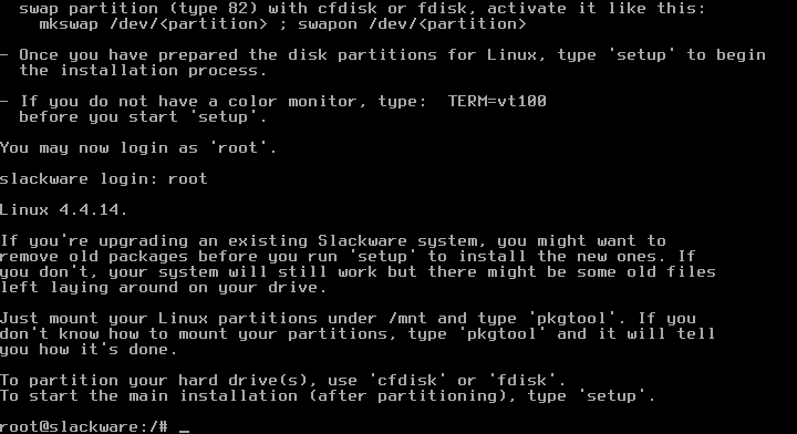 Pronto, Slackware instalado com sucesso!