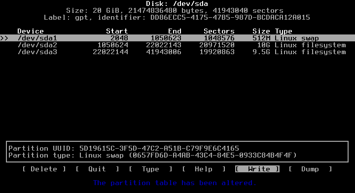 06 - Nesse ponto, precisamos configurar a tabela de partições, para isso nós temos vários utilitários, cfdisk, fdisk e gdisk, se você não está muito familiarizado com o fdisk, sugiro que use o cfdisk.