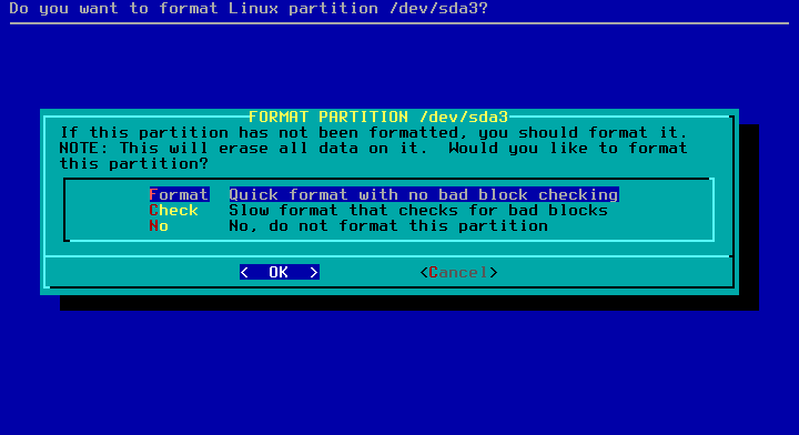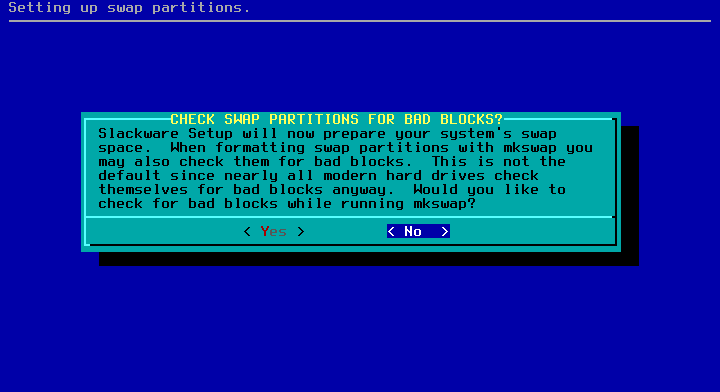 10 - Responda não para checagem de bad blocks na partição swap.