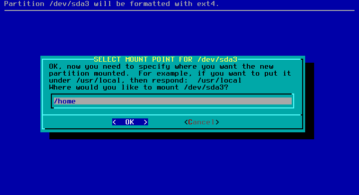 15 - Agora selecione a outra partição, que será nosso /home.