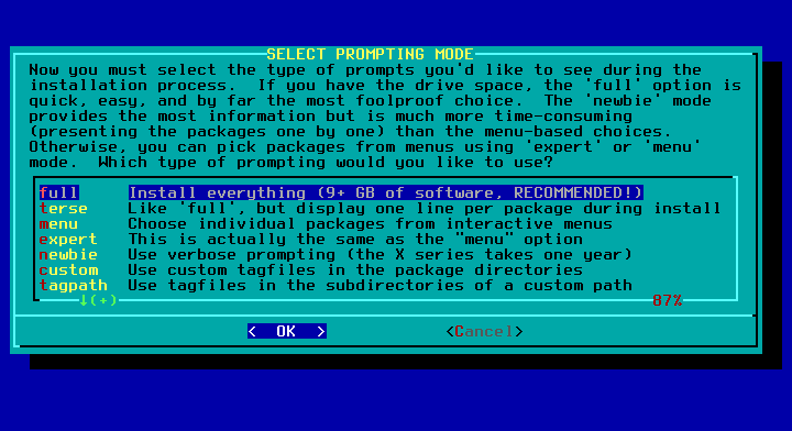 23 - Selecione o modo de instalação, deixe como full.
