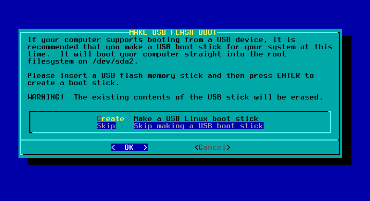 24 - Após a instalação dos pacotes terminar é possível criarmos um disco USB FLASH BOOT, em nosso caso não é necessário, selecione Skip.