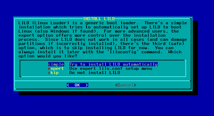 25 - Selecione o modo de instalação do LILO, pode deixar como simple mesmo.