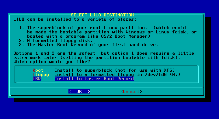 29 - Selecione o local de instalaçãodo LILO, em nosso caso MBR.