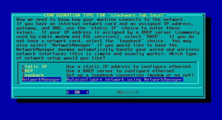 35 - Selecione o tipo de configuração, DHCP, IP estático e etc, em nosso caso, vamos utilizar o NetwokManager, em outros momentos vamos ver outras configurações.