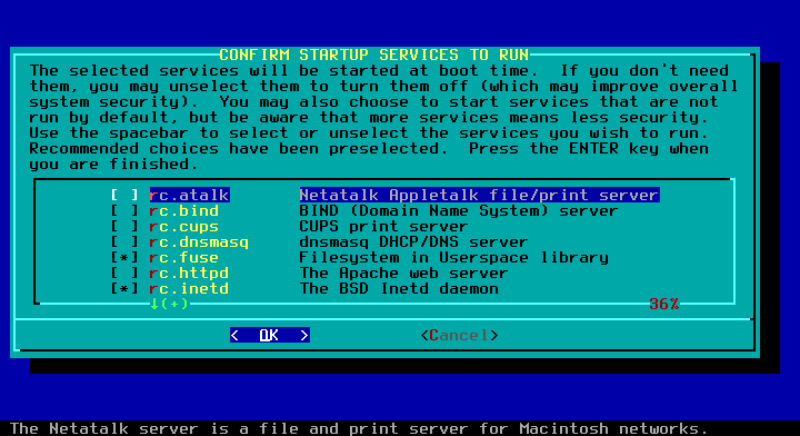 37 - Selecione os serviços que deseja que sejam iniciados junto com o sistema, vamos deixar no padrão.