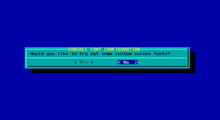 38 - Caso deseje configurar uma fonte especifica para o console, selecione Yes, no nosso caso vamos deixar como No.