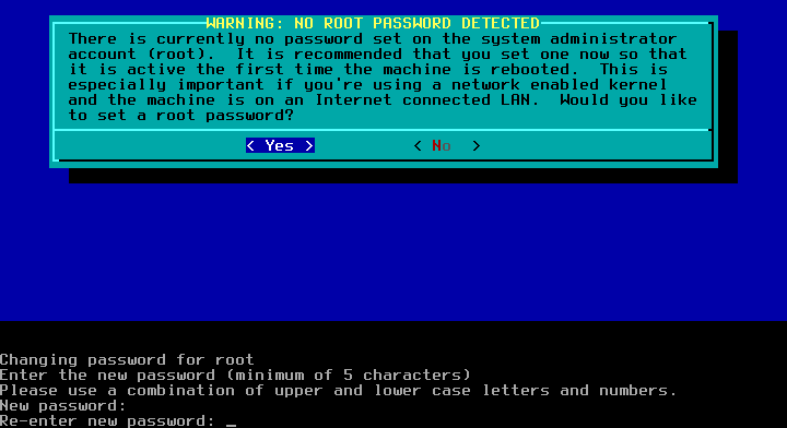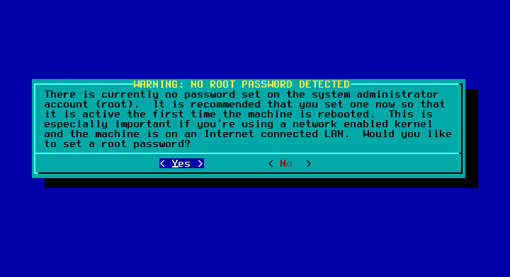 42 - Selecione Yes para configurar a senha de root.