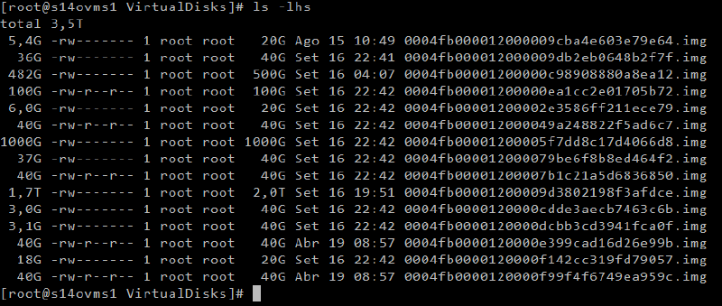 # ls -lhsTambém podemos verificar o tamanho dos discos usando a CLI do Oracle VM Manager.