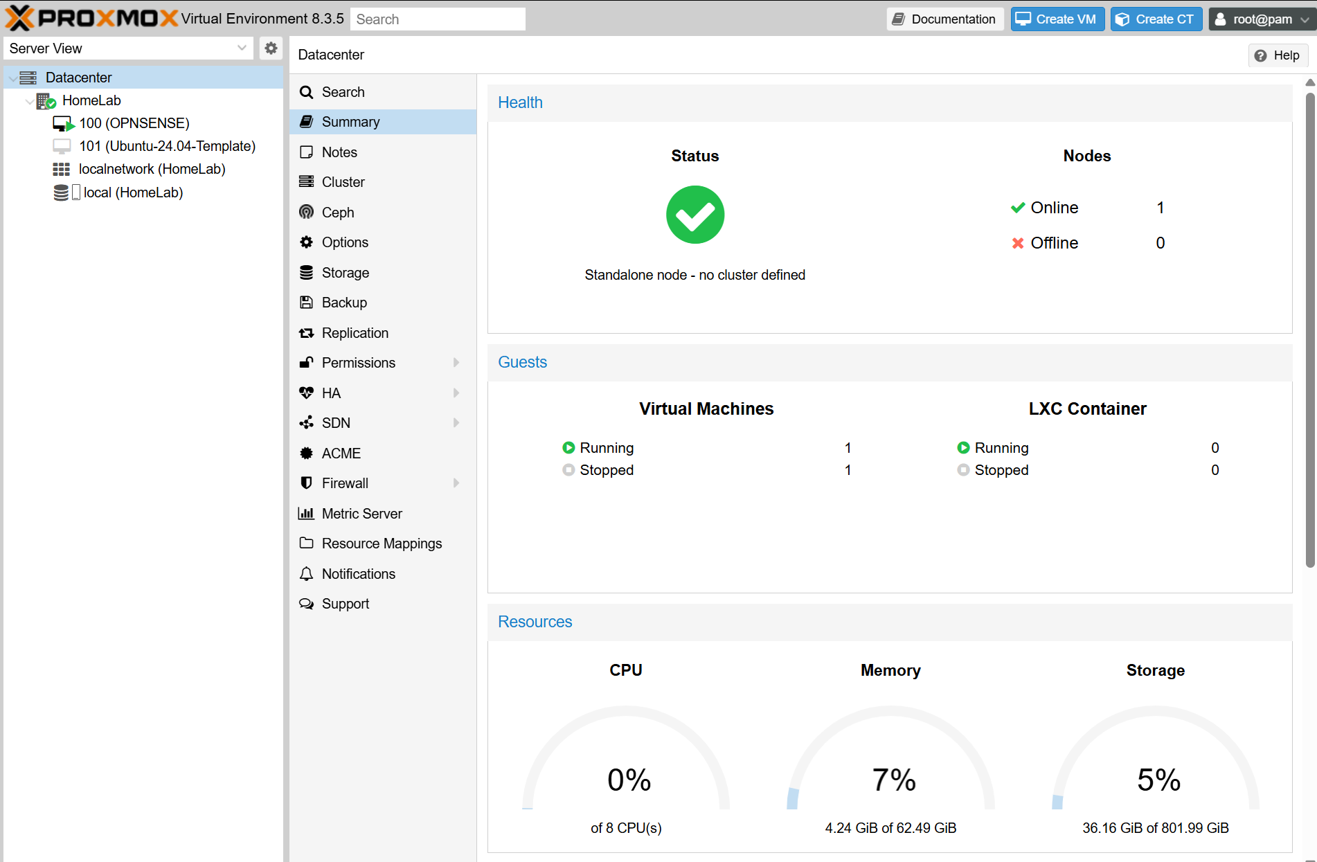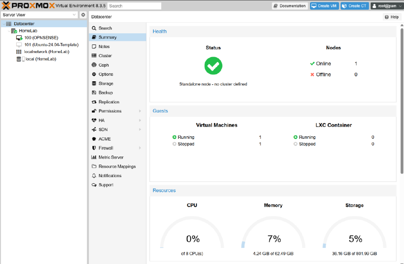 No momento, estou rodando o Proxmox 8 como sistema operacional. Nunca havia explorado a fundo essa solução, então estou aproveitando para aprender mais sobre ela, especialmente agora que o ESXi Free deixou de estar disponível.
