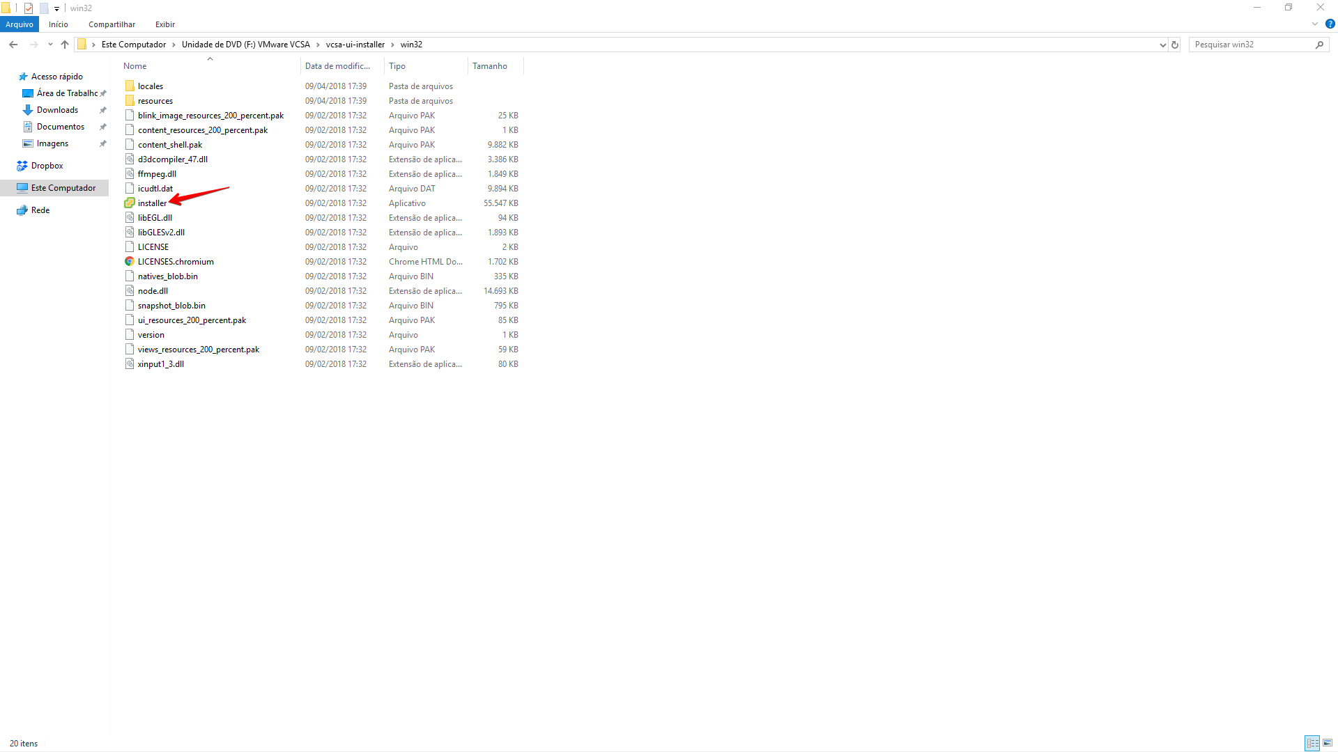 2 - Entre na pasta vcsa-ui-install e depois em win32, se estiver usando Linux ou Mac entre nas pastas respectivas a cada sistema, execute o installer.