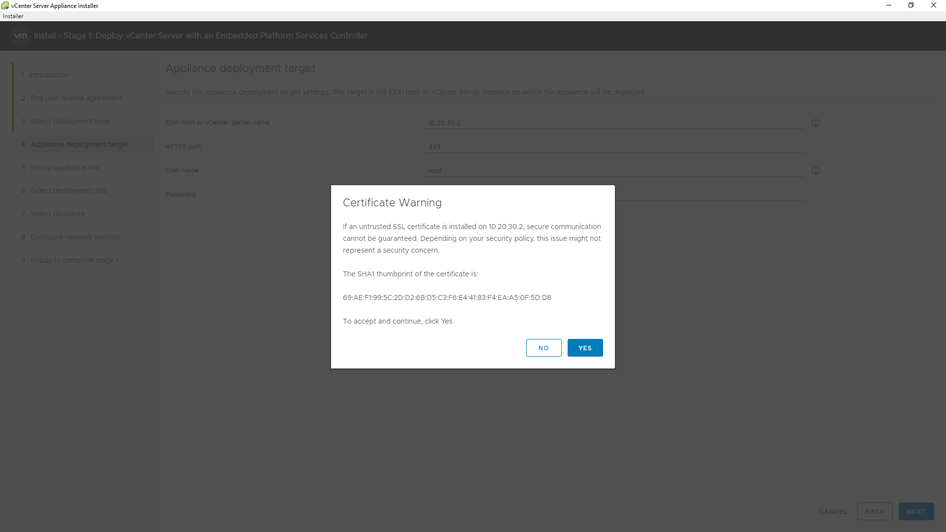 8 - Aceite o certificado, clique em YES.