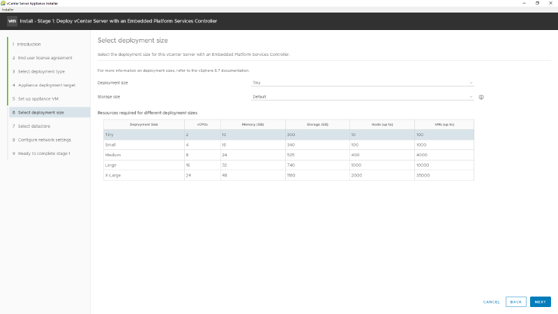 10 - Selecione o tamanho do deploy de acordo com seu ambiente, em nosso caso como é apenas para LAB vamos deixar como Tiny, clique em NEXT.
