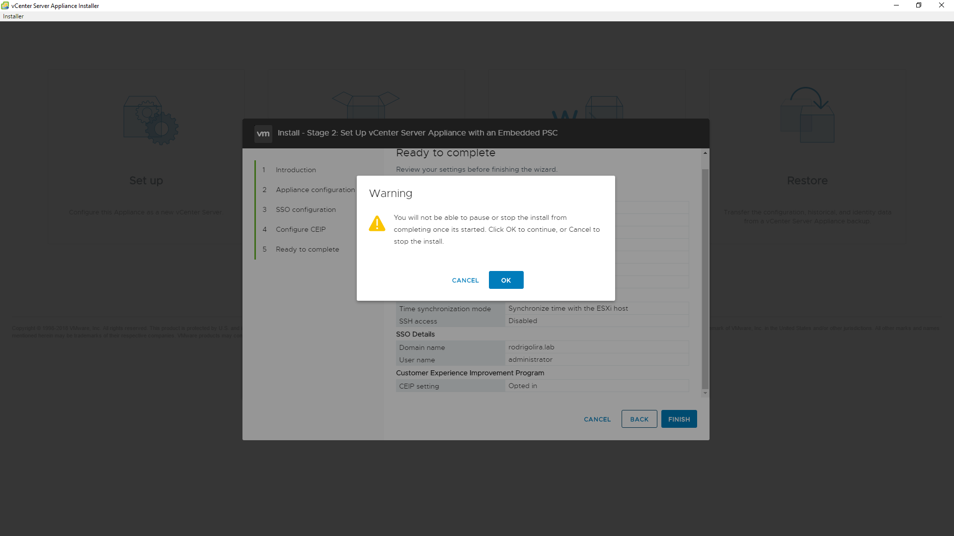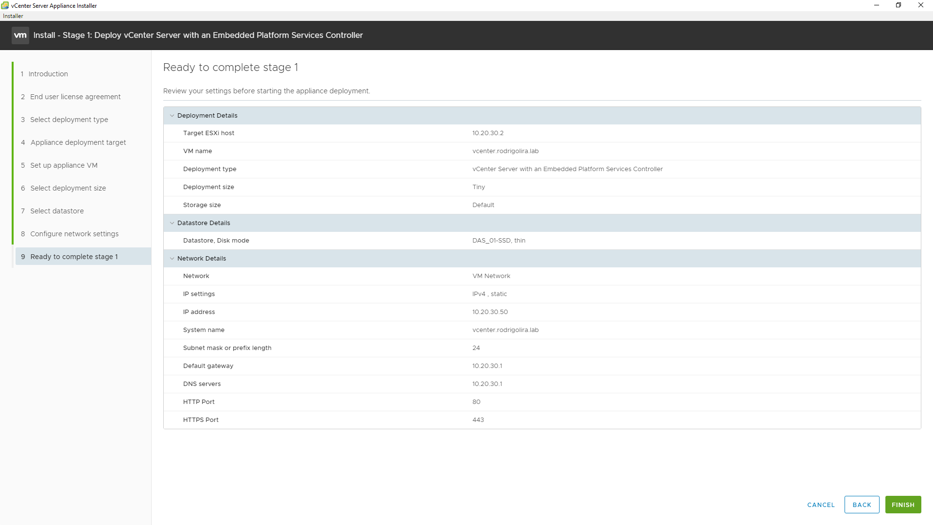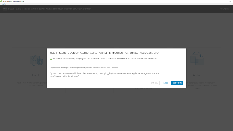 22 - Pronto, VCSA instalado com sucesso!