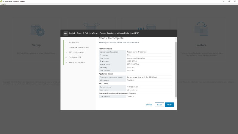 Maiores detalhes sobre a instalação do VCSA no link abaixo: