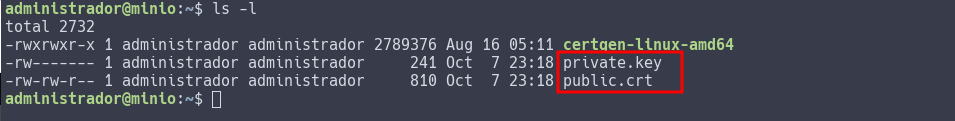 # mkdir -p /etc/minio/certs5 - Agora mova os arquivos private.key e public.crt para dentro do diretório criado.