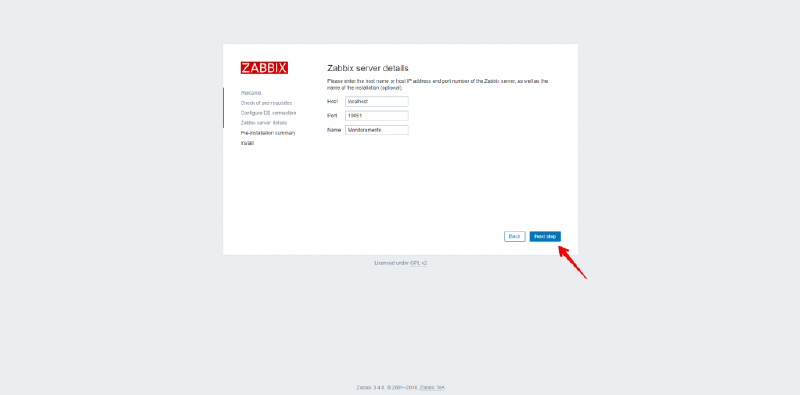 22 - Configure um nome para o servidor e clique em Next step.
