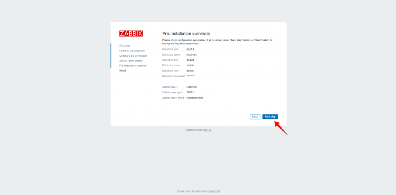 # /etc/rc.d/rc.zabbix_server start (inicia o Zabbix Server)19 - Agora abra o navegador e digite o endereço do servidor para concluirmos a instalação, clique em Next step: