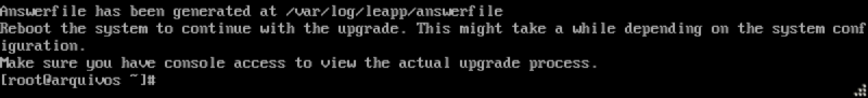 # leapp upgradeQuando o comando terminar de executar será solicitado para reinicie o computador.