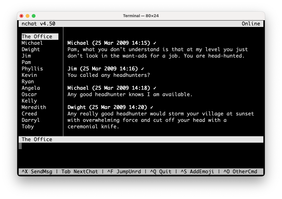 https://github.com/d99kris/nchat