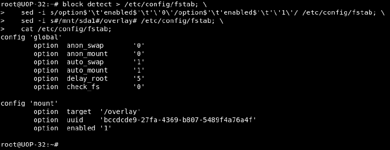 sed -i s#/mnt/sda1#/overlay# /etc/config/fstab; \