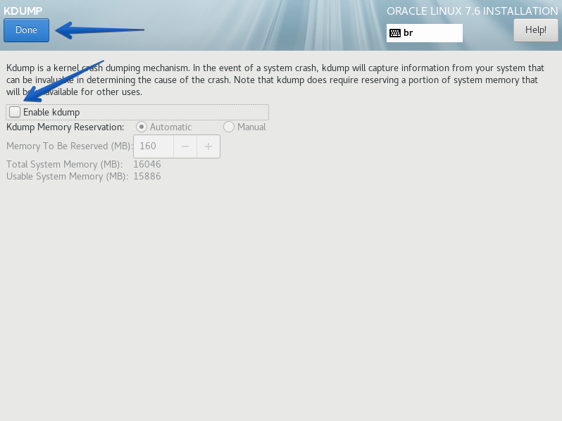 15 - Clique em KDUMP para desabilitarmos o kdump.
