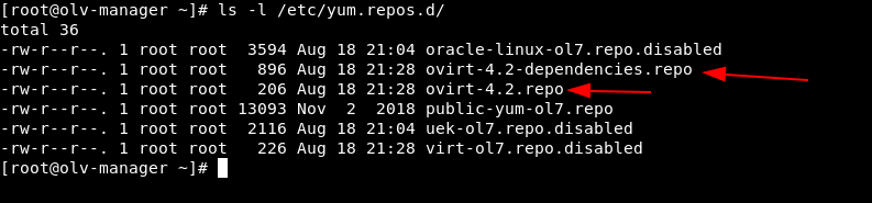# yum install -y https://yum.oracle.com/repo/OracleLinux/OL7/ovirt42/x86_64/ovirt-release42.rpmEste pacote vai fazer a instalação dos repositórios necessários para instalação de todos os demais pacotes do Manager, como mostra a imagem abaixo.