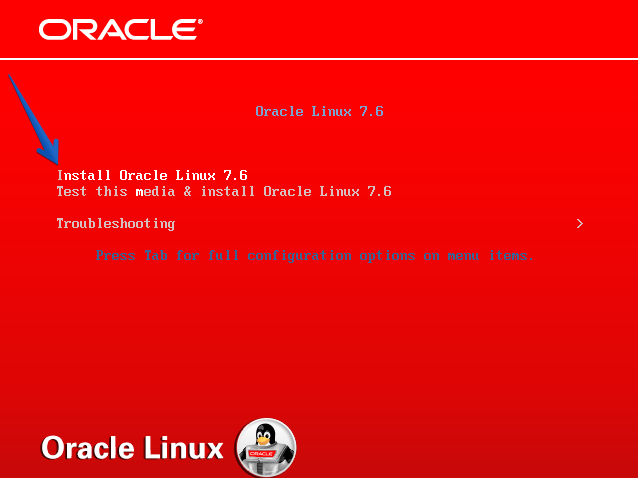 01 - Dê boot e selecione Install Oracle Linux 7.6 e aperte ENTER.