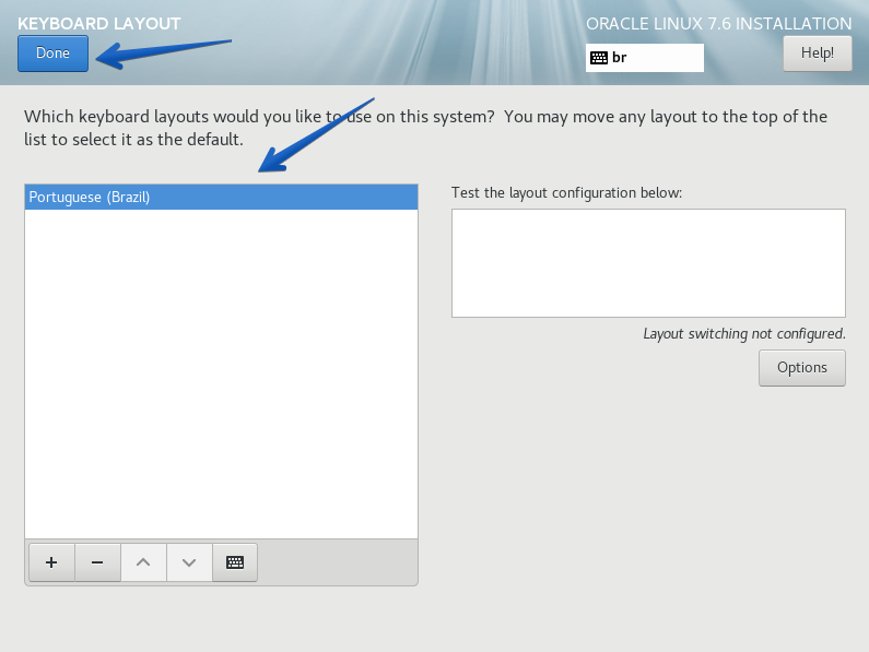 13 - Por padrão o Oracle Linux irá criar três partições para esse tamanho de disco, clique em Done.