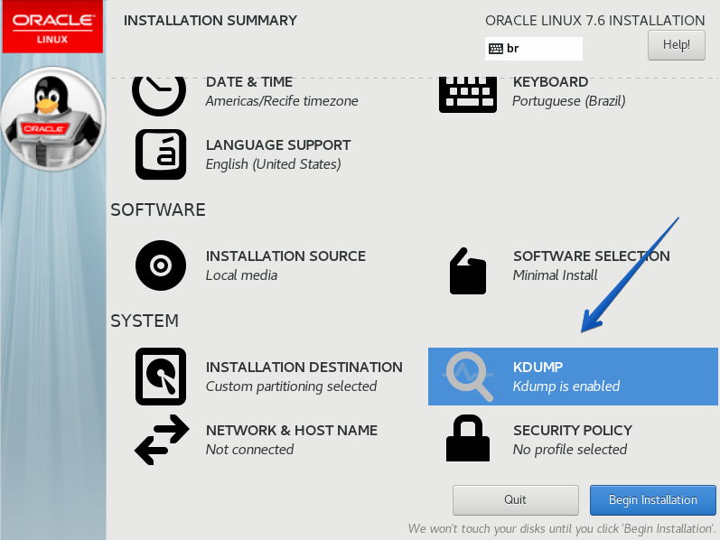15 - Clique em KDUMP para desabilitarmos o kdump.