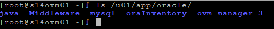 Continuando, quase todos os componentes Oracle VM Manager se encontram dentro do diretório /u01, mais especificamente /u01/app/oracle/.