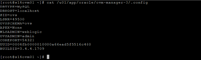 Fora o banco de dados, precisamos salvar outro arquivo para uma futura restauração do nosso Oracle VM Manager, precisamos salvar o arquivo /etc/sysconfig/ovmm, dentro desse arquivo encontramos a variável UUID=0004fb0000010000a66ead5f5516c460, esse é o UUID do meu Oracle VM Manager.