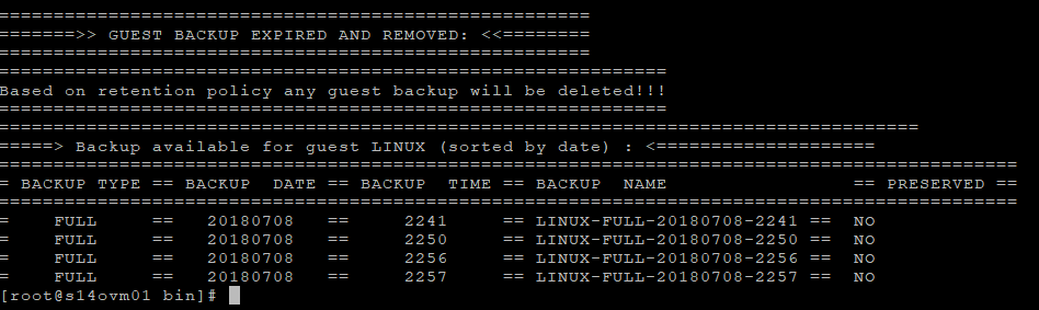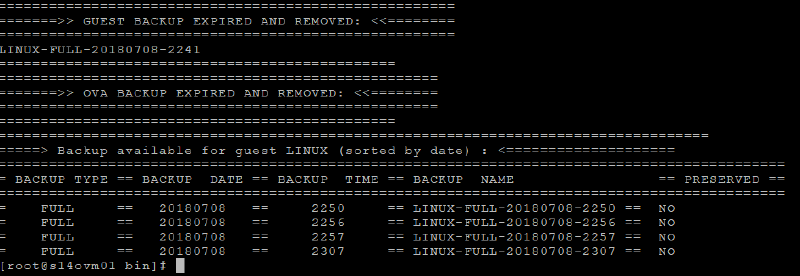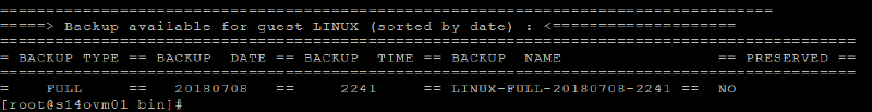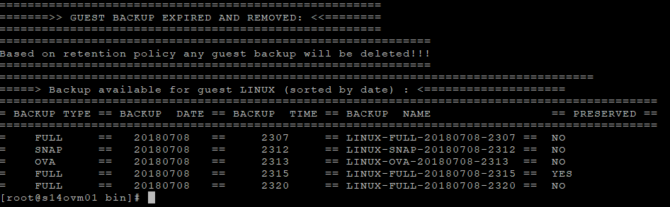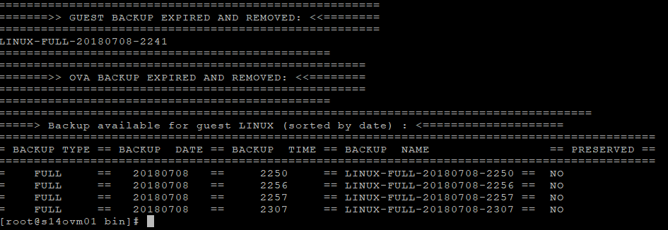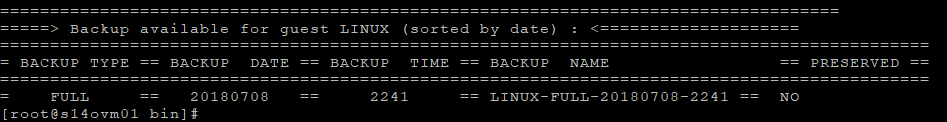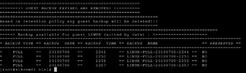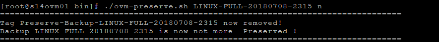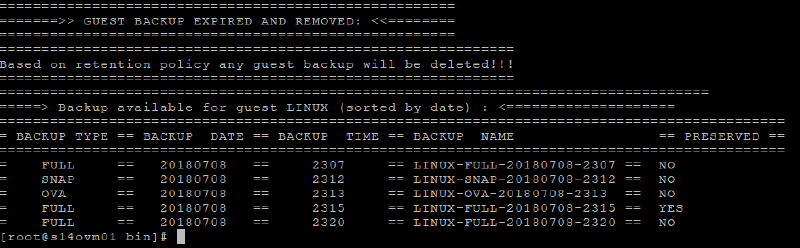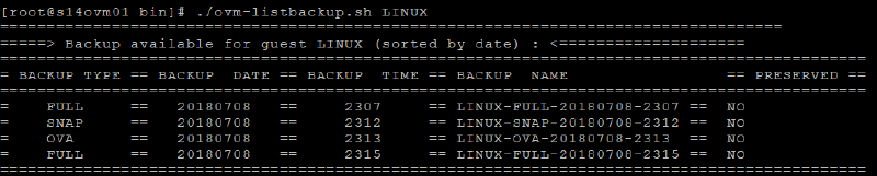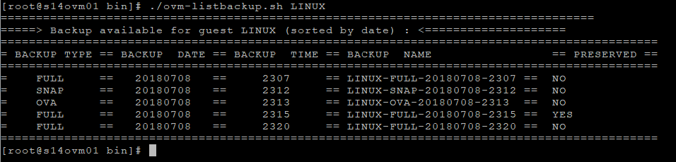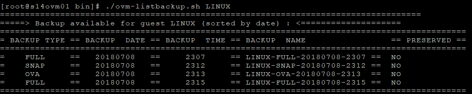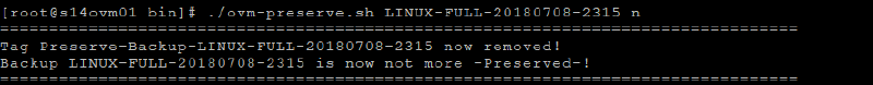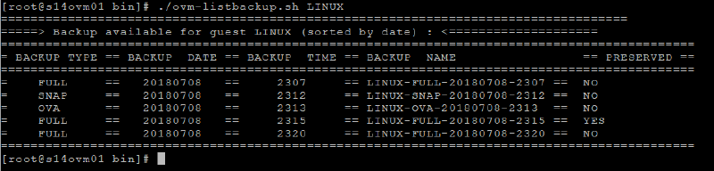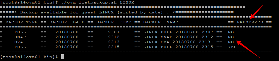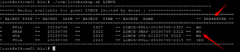 # ./ovm-preserve.sh LINUX-FULL-20180708-2315 nAgora basta listar novamente os backup e veremos que houve a mudança.