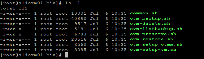 Entre na pasta /opt/ovm-bkp/bin e execute um ls -l para listar o conteúdo do diretório, o ovm-bkp é composto por vários scripts, cada um tem uma função diferente.