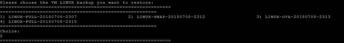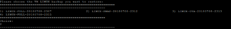 # ./ovm-restore.sh LINUXSerá exibido um menu para escolhermos qual desejamos restaurar: