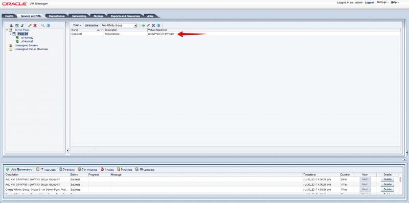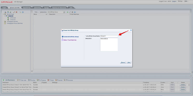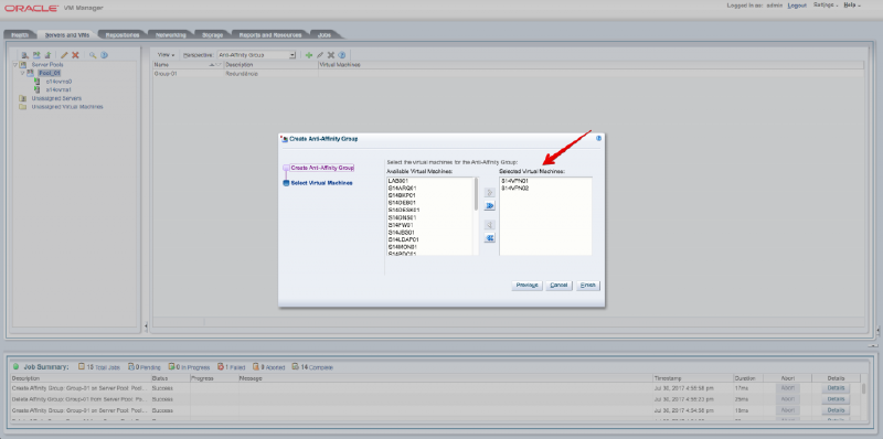 O anti-affinity group ou grupo anti-afinidade especifica que máquinas virtuais nunca devem ser executadas no mesmo servidor Oracle VM. Um grupo anti-afinidade aplica-se a todos os servidores em um pool de servidores.
