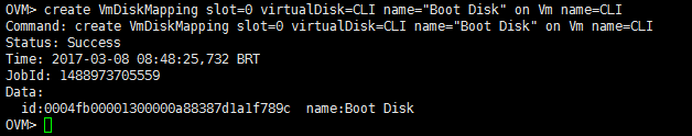 create VmDiskMapping slot=0 virtualDisk=CLI name="Boot Disk" on Vm name=CLI4 – Adicionamos a ISO de instalação do sistema operacional ao slot 1 da máquina virtual.
