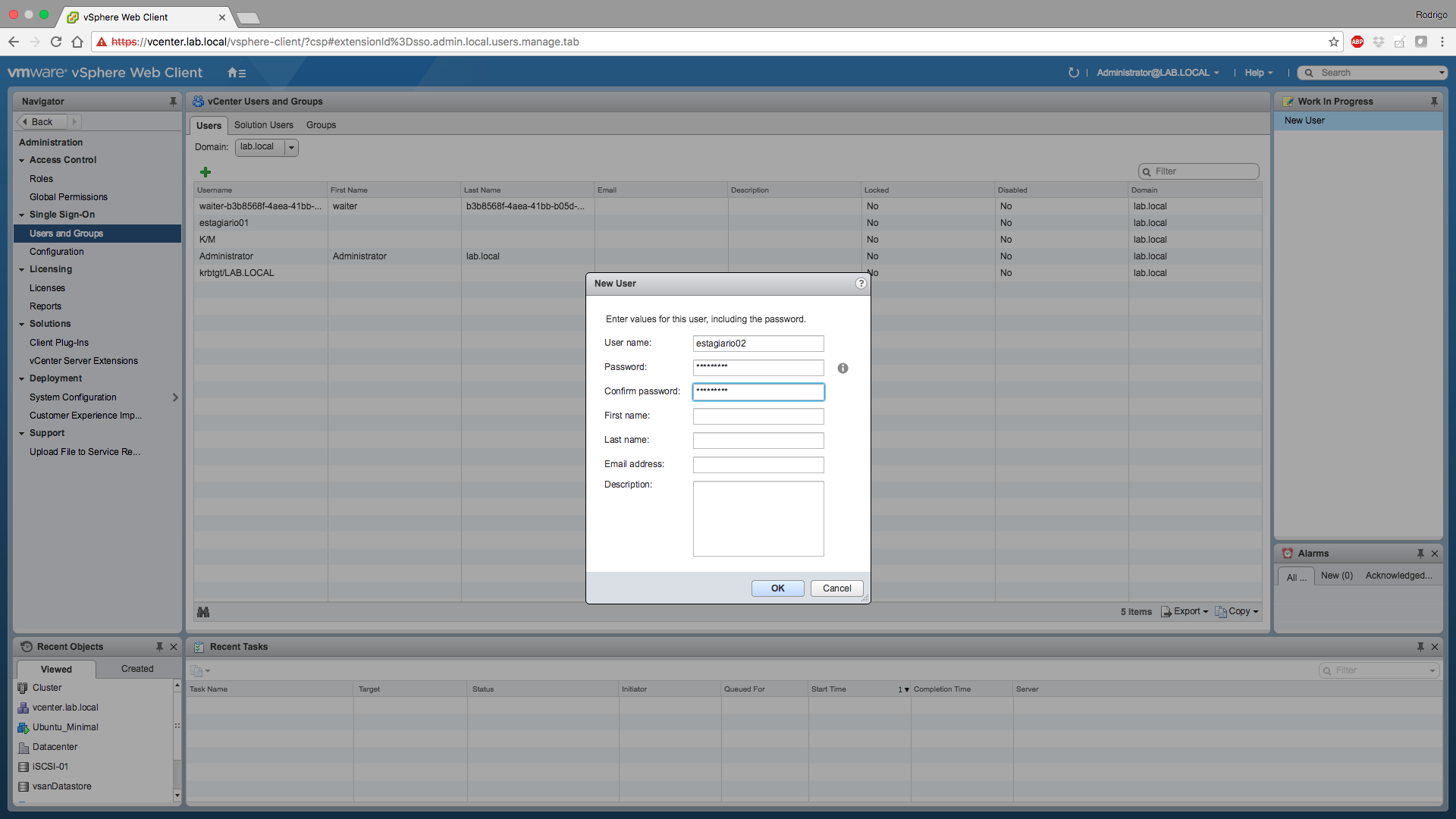 Agora vamos criar o usuário chamado estagiario02.