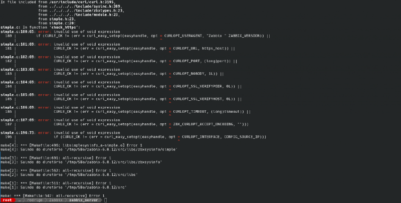 Hoje quando fui atualizar o meu Zabbix Server para a versão 6.0.12 recebi um erro na hora de criar o pacote para o Slackware.