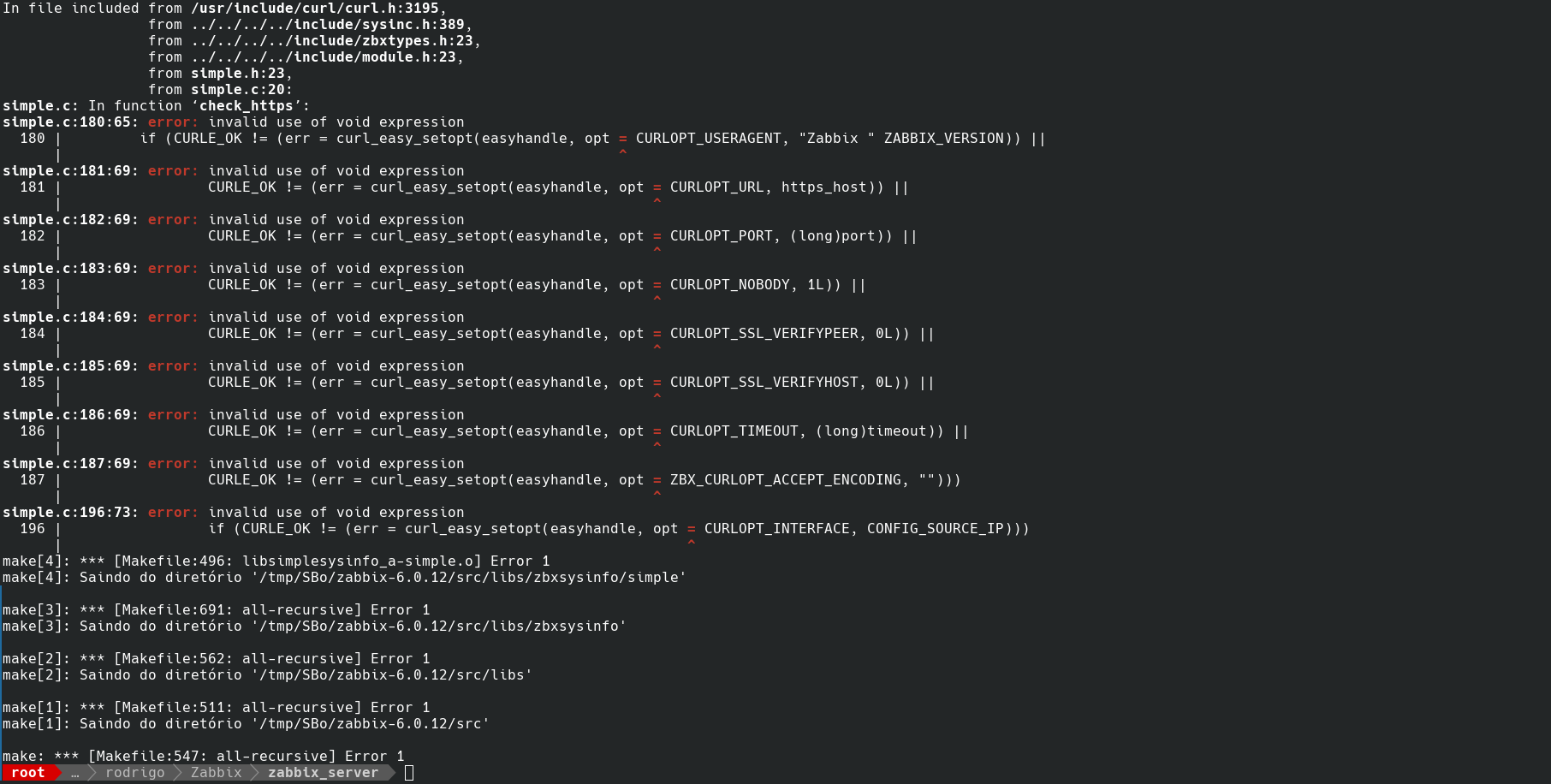 Hoje quando fui atualizar o meu Zabbix Server para a versão 6.0.12 recebi um erro na hora de criar o pacote para o Slackware.