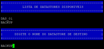 3 - Vai listar os datastores disponíveis e pergunta o nome do datastore de destino.